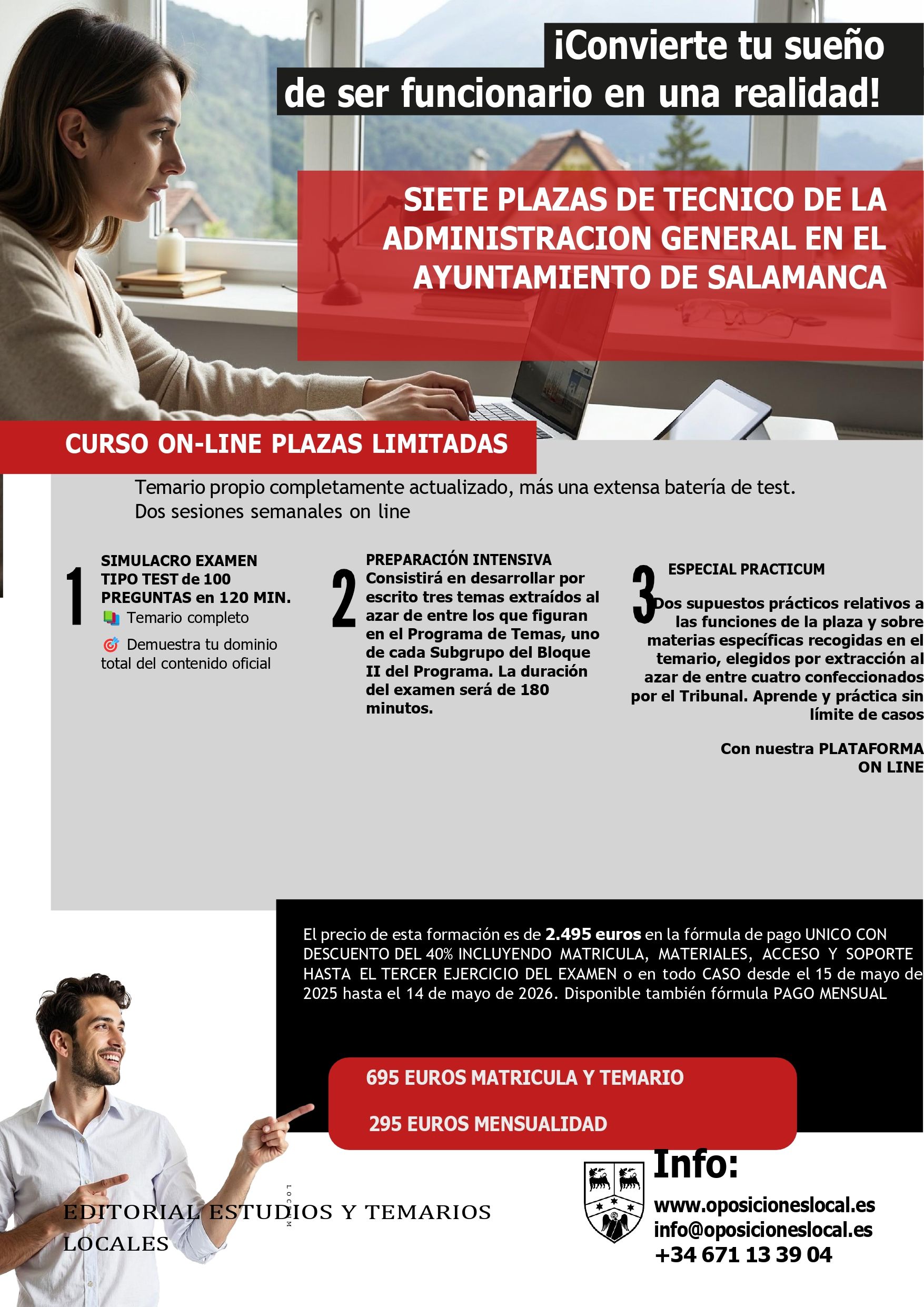 Este Ayuntamiento ha convocado oposición libre para cubrir, como personal funcionario de carrera, cuatro plazas de Técnico de Administración General, encuadradas en la Escala de Administración General, Subescala Técnica, Clase Superior, y según el artículo 76 del Real Decreto Legislativo 5/2015 de 30 de octubre, por el que se aprueba el texto refundido de la Ley del Estatuto Básico del Empleado Público, Grupo A, Subgrupo A1, plaza incluida en la Oferta de Empleo Público de 2024.Las solicitudes para tomar parte en las pruebas selectivas se presentarán dentro del plazo de veinte días hábiles contados...