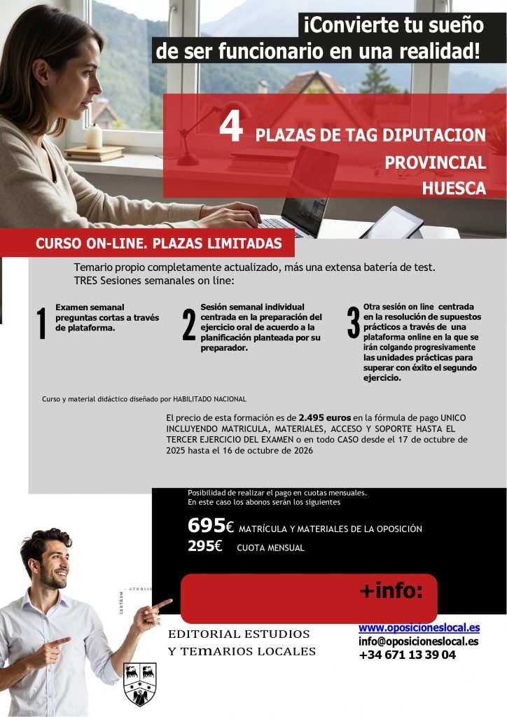 n el «Boletín Oficial de la Provincia de Huesca» número 173, de 15 de septiembre de 2025, se han publicado las bases que han de regir la convocatoria para proveer cuatro plazas de Técnico/a de Administración General, pertenecientes a la escala de Administración General, subescala Técnica, por el sistema de oposición, en turno libre.
