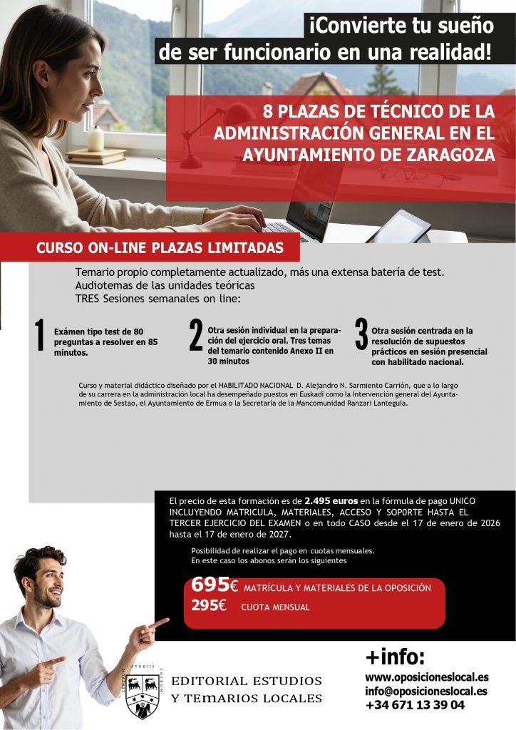 En el «Boletín Oficial de la Provincia de Zaragoza» número 267, de 20 de noviembre de 2025, se han publicado las bases que han de regir la convocatoria para proveer ocho plazas de Técnica/o Administración General, pertenecientes a la escala de Administración General, subescala Técnica y clase Superior, por el sistema de oposición, en turno libre.