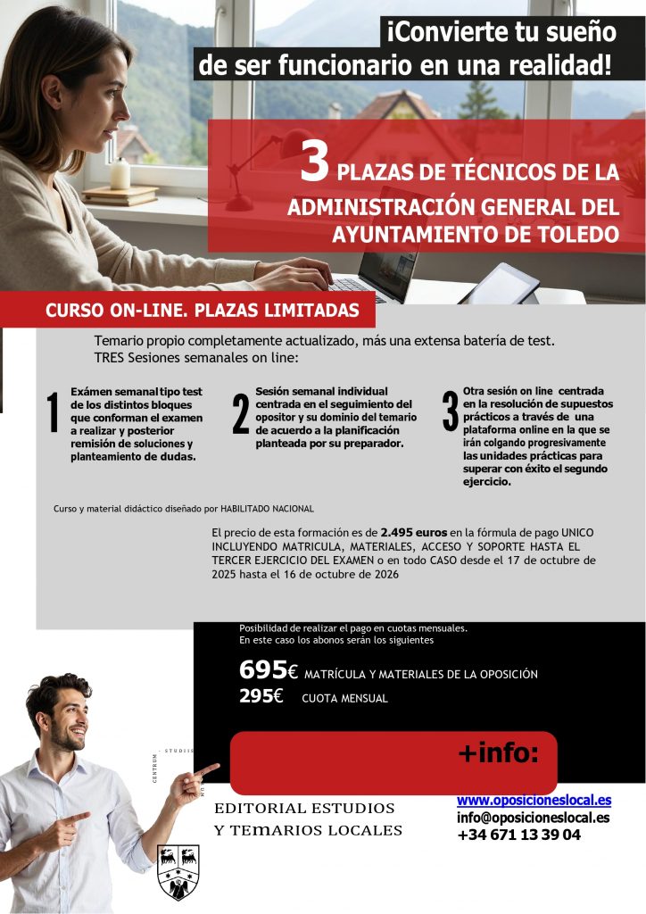 Más información en https://oposicioneslocal.es. Disponible CURSO ESPECÍFICO, TEMARIO ESPECIFICO, TEMARIO GENERAL, LIBROS DE TEST Y CASOS PRACTICOS